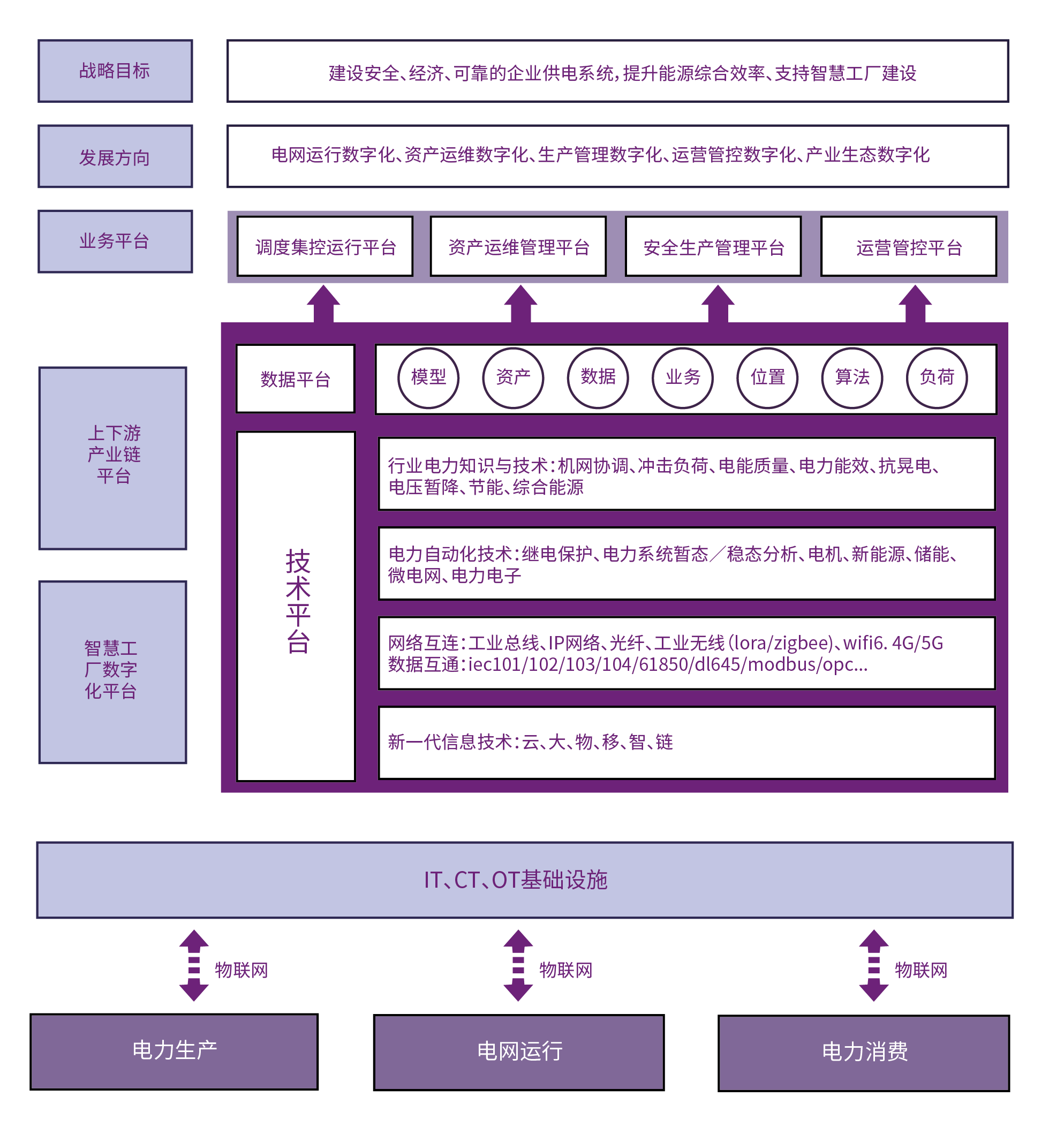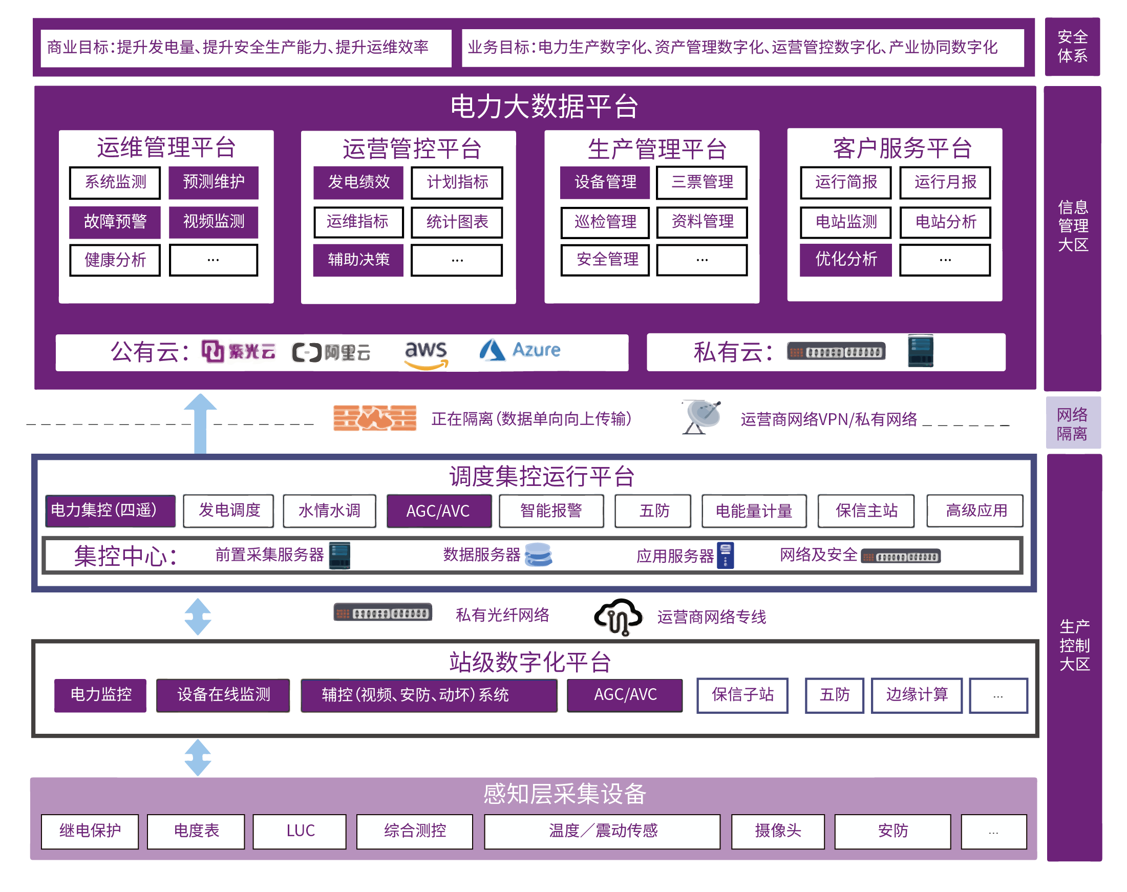 以电力业务为核心,以信息化、数字化、智能化为技术手段,通过“云、管、边、端”全景数字化升级改造,帮助企业建设基于数据驱动的数字化平台体系,帮助工业企业、中小水利发电企业、新能源发电企业、工商业园区完成数据驱动智能的新业务模式,提升企业运营的综合效率。