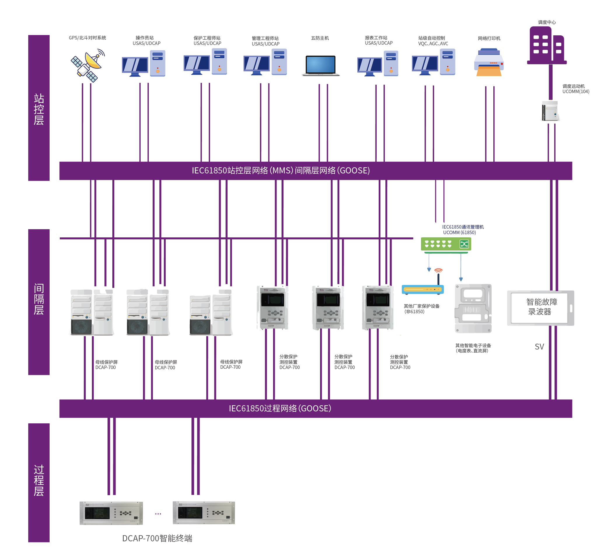 DCAP-700系列保护测控装置,是清能华控科技有限公司为适应变电站智能化发展的要求,在总结多年的变电站综合自动化研究、开发和工程经验(包括国际知名品牌产品的应用经验)的基础上,以提升?;ぷ爸玫目煽啃?、推进智能化和网络化发展为出发点,采用基于高集成度多核芯片和自主知识产权嵌入式软件的新平台,而开发的新一代智能保护测控装置,在遵循IEC61850标准进行智能化设计方面不低于国际知名品牌主流产品。
